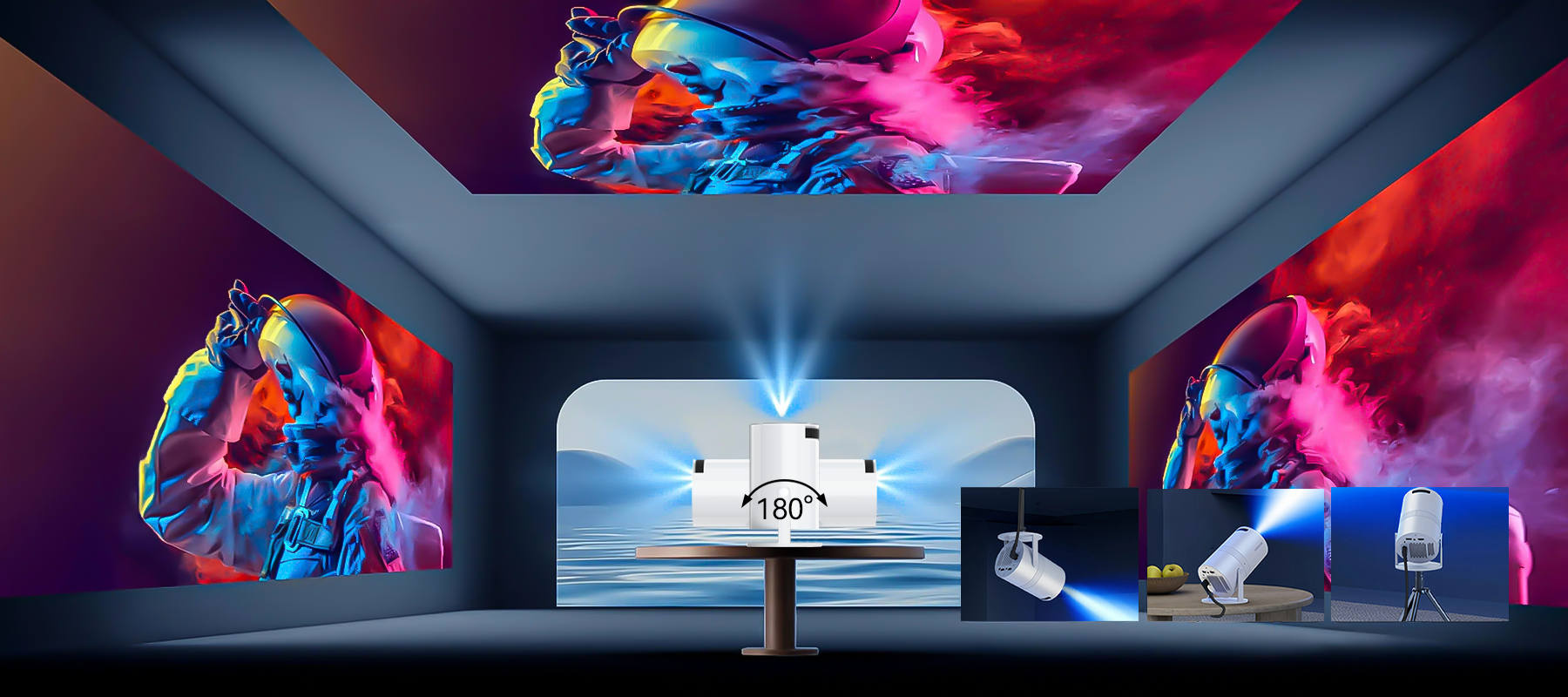 - 180° Swivel Projection: Project onto the ceiling and watch from any position you find comfortable.